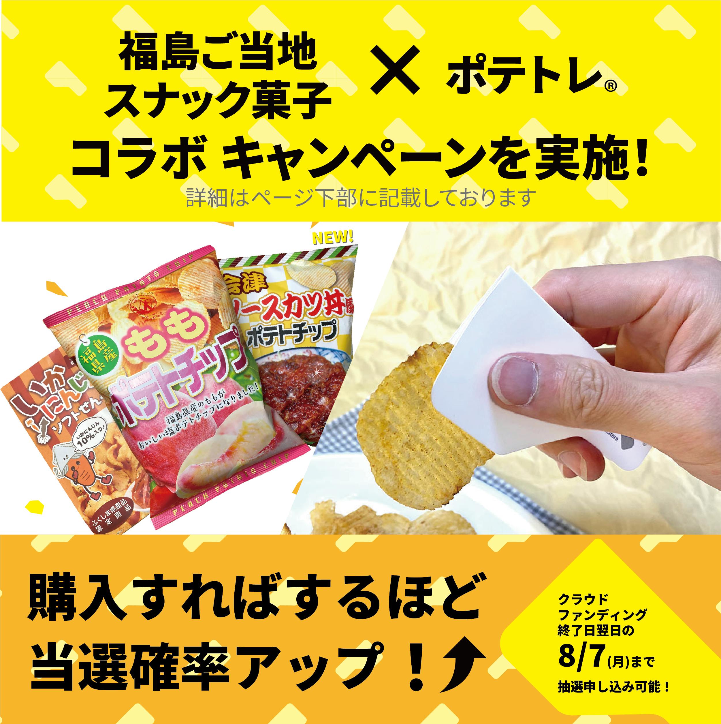 2023/08/06 12:00「ポテトレ」は本日で最終日となります!現在「ポテトレ」では現在、福島ご当地スナック菓子とのコラボを記念し<「ポテトレ」×福島ご当地スナック菓子 コラボキャンペーン>を実施中です!!2023年8月7日(月)までのキャンペーン期間内にポテトレのリターンを購入後、応募フォームからご応募いただいた方に抽選で豪華な景品が当たります!ポテトレのリターンを購入できるのは”本日 8月6日(日)まで”ですので、ご興味ある方はぜひお買い求めください!!※すでにご応募して頂いている方は2度目以降の応募は不要です。※支援総額が2,500円につき1口として計算いたしますので、ご自身の支援金額をご確認のうえご応募ください。残り短い時間ですが、「ポテトレ」を宜しくお願い致します! もっと見る