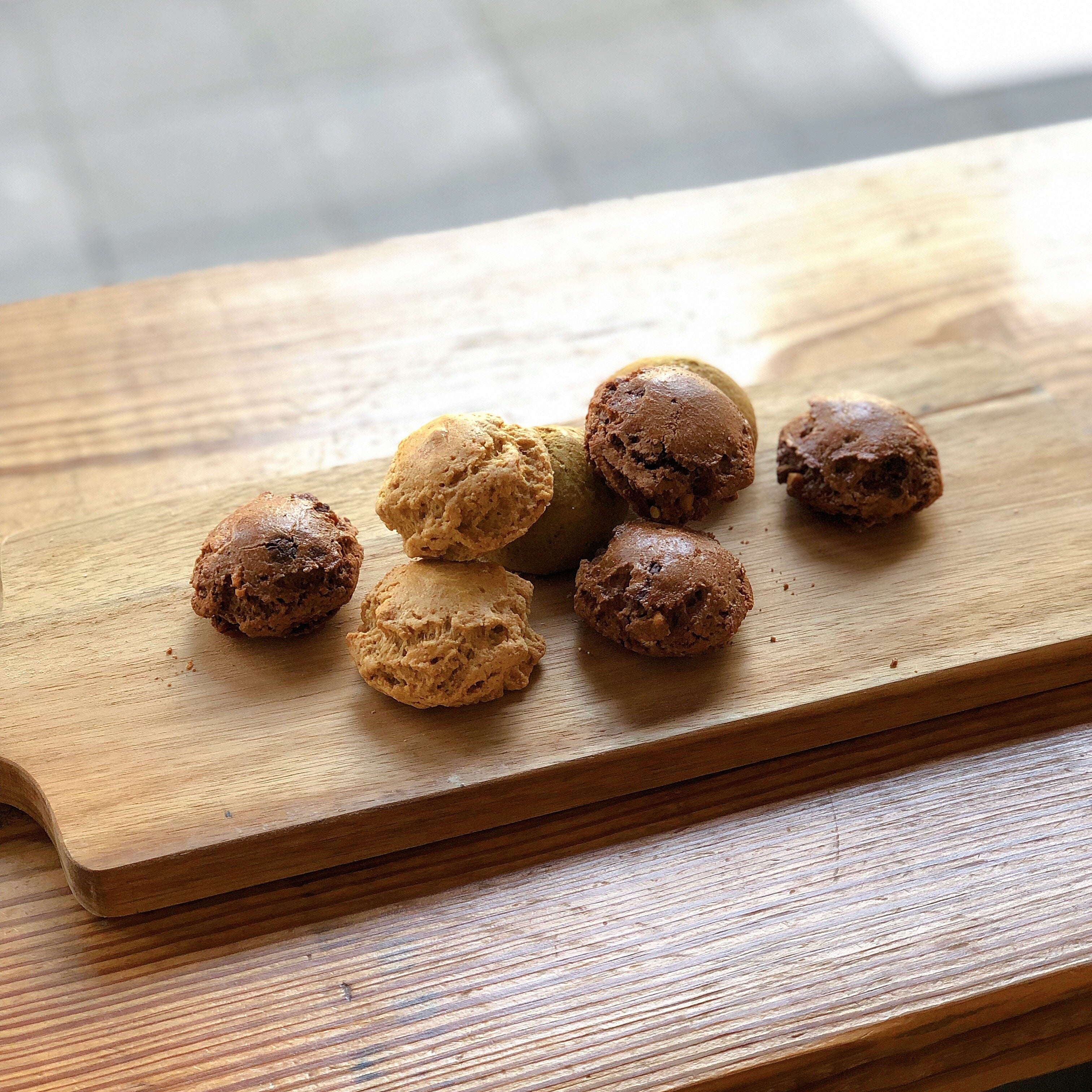 発酵バターを使ったプレーンテイスト、チョコレートとナッツ類(アーモンド、カシューナッツ、くるみ)の入ったチョコ&ナッツ、抹茶と黒蜜を使った抹茶&黒蜜の3種類のテイストを楽しめます。