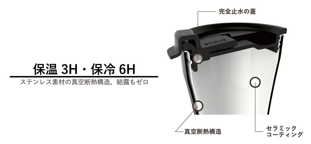 「ワクワクと奮い立たせること」を意味する「Stoked」を由来とし、持っているだけで期待が高まる、端麗かつ優美な雰囲気が特長。また、ステンレス素材をベースに、内側には陶器と同等の効果を持つセラミックコーティングを施すことで、金属とは思えない優しい口当たりにも自信があります。