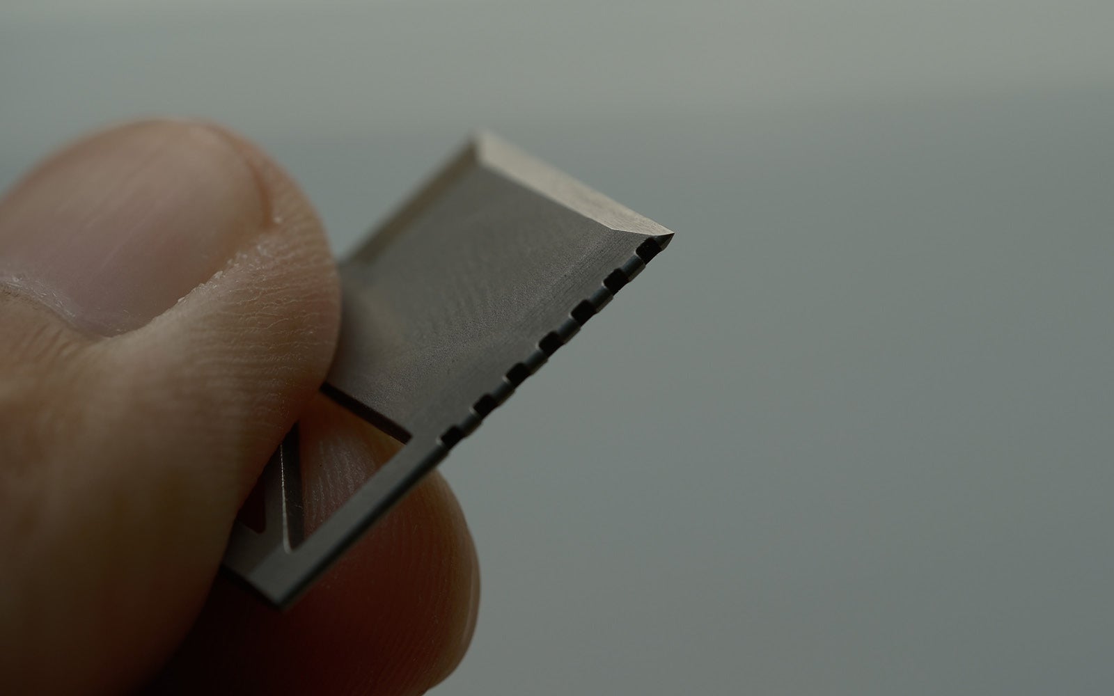 刃の逆側にある12個の凹凸は1mm間隔で配置。最大12mmのメジャーとして使えます。ナット径などの小さな物をサッと計測できます。