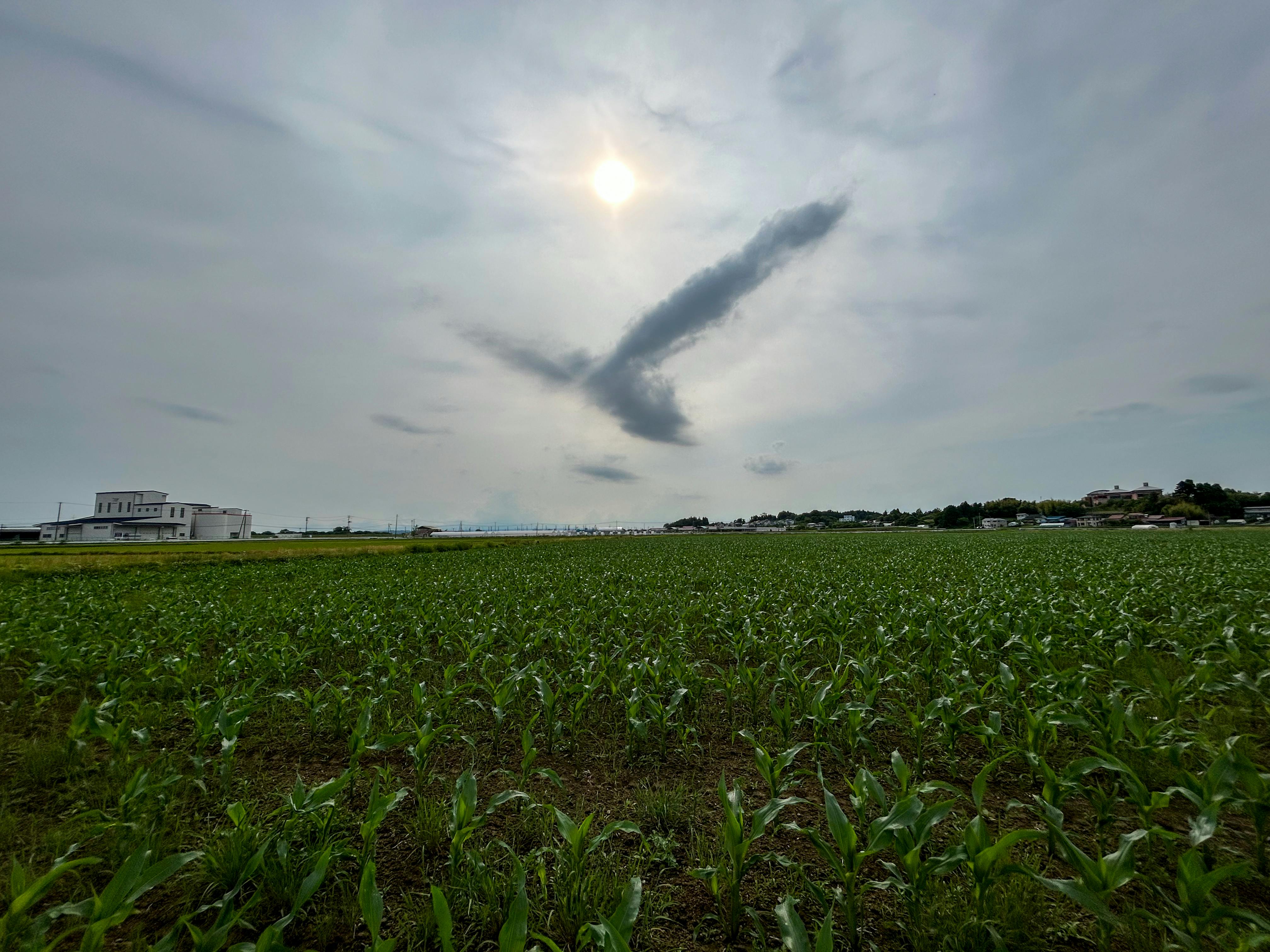 デントコーン迷路の西側の上空に、とうもろこしの頭文字「T」の形をした巨大な雲が!