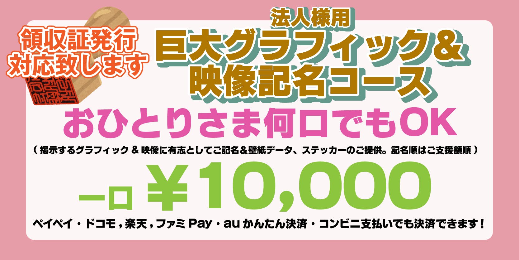 資金は巨大グラフィック(横断幕を予定しています)の印刷費、等身大パネルの印刷費、