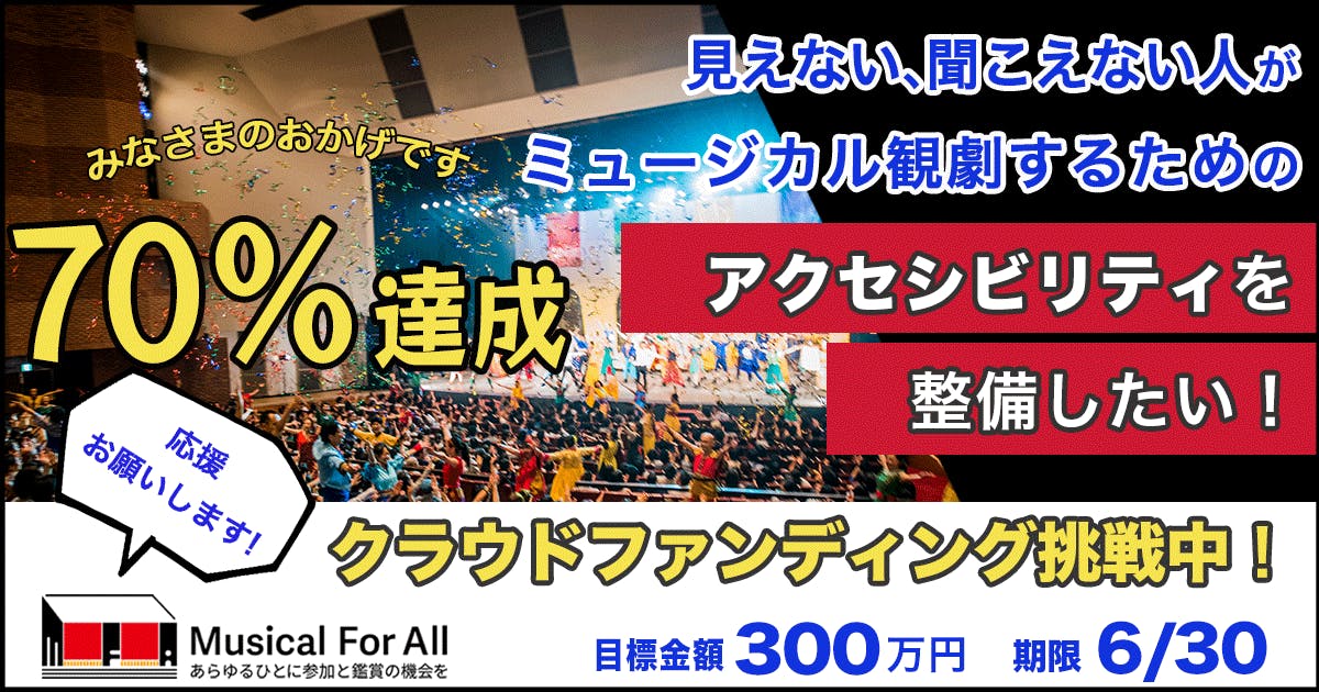 クラウドファンディング「見えない・聞こえない人がミュージカル観劇するためのアクセシビリティを整備したい!」への応援を最後までよろしくお願いします!