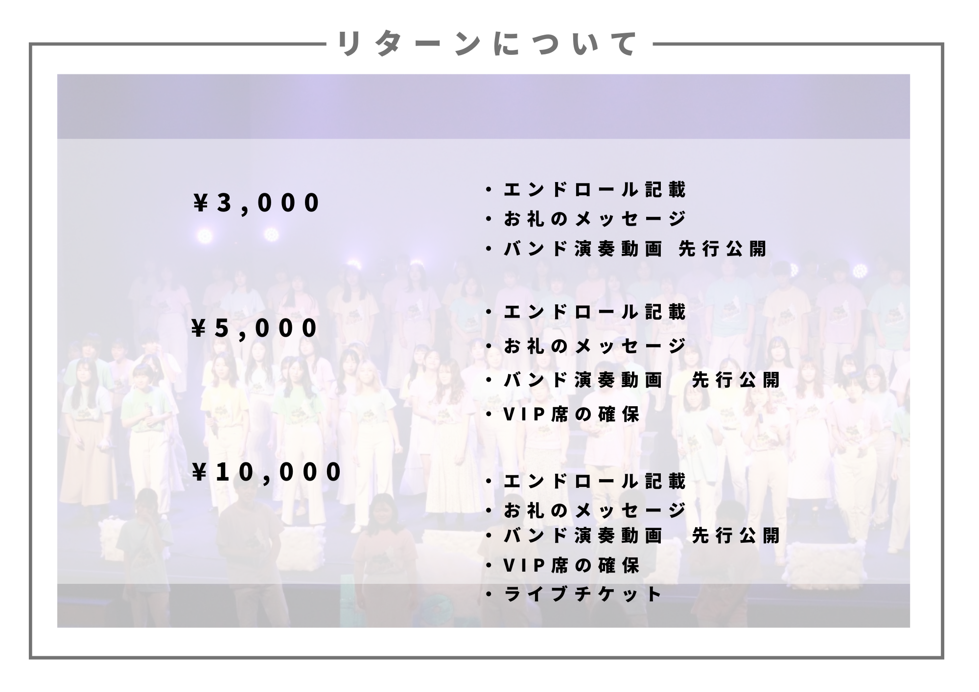 ※エンドロールに名前を記載させていただきます。ライブ当日に加え、後日投稿いたします動画にも掲載いたします。