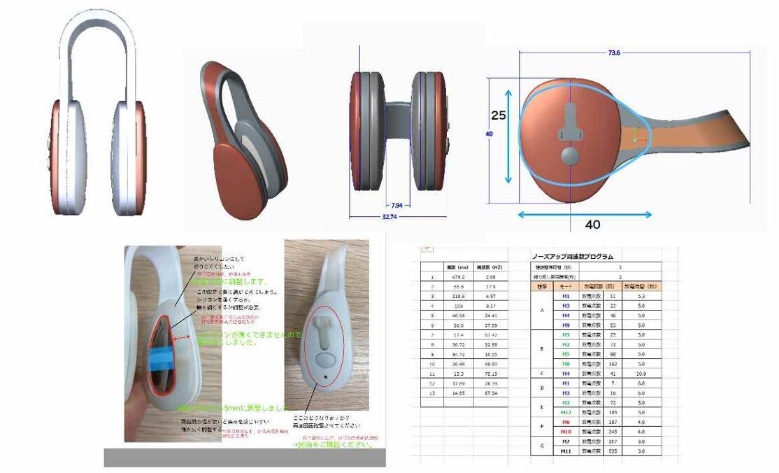 鼻を挟むために最適な角度、プログラムの周波数の設定、モード、レベル、デザイン等・・・