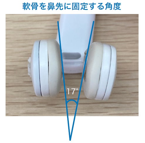 そこで100人以上の鼻をモニタリングし、 鼻先に向けて角度をつけ、軟骨がきれいな角度で固定される17度の設計を目指しました!