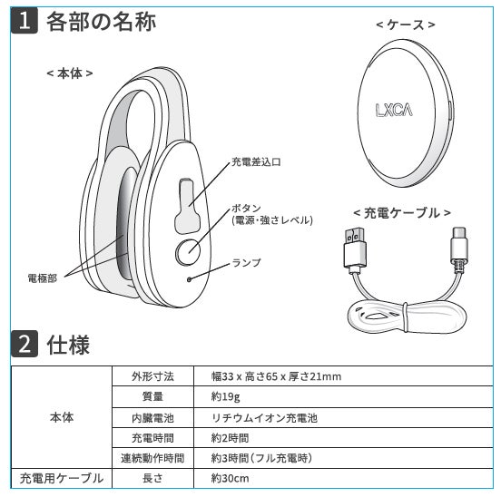 (人によって刺激の感じ方が違いますが、2~3分たっても何も感じない場合はレベルを上げてお使いください。)