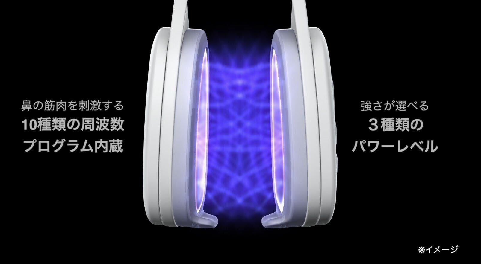 2~50Hzまでの10種類の周波数の電気刺激により鼻の筋肉を効率よく鍛えます。