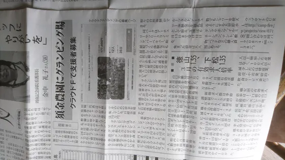 クラウドファンディングで支援者を募集している記事が新聞に掲載されました‼