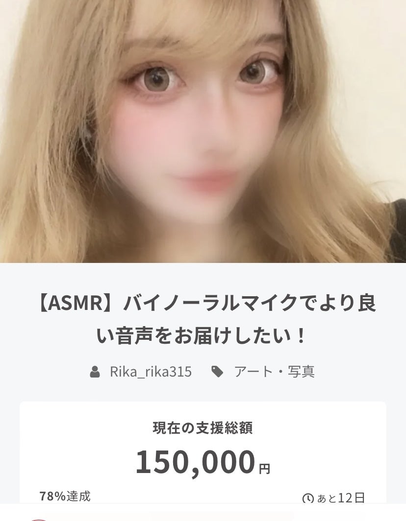 2023/09/13 14:48皆様のおかげです。本当にありがとうございます!皆様にリターンの件でお詫びがあります。只今、機材の在庫が切れてしまっているので入荷待ちであることと、9月中に祖母が身体を壊してしまい、こちらの家に来ることになったため、私自身の1人部屋がなく、撮影できる時間がなくなってしまいました。10月中旬のリターンのお届けになってしまいます、申し訳ありません。またここでご報告させていただきます!応援してくださりありがとうございました! もっと見る達成しました!!