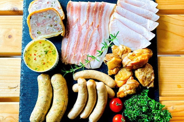 豚肉、塩、香辛料だけの完全無添加の美味しいハムソーセージを是非食べて下さい。