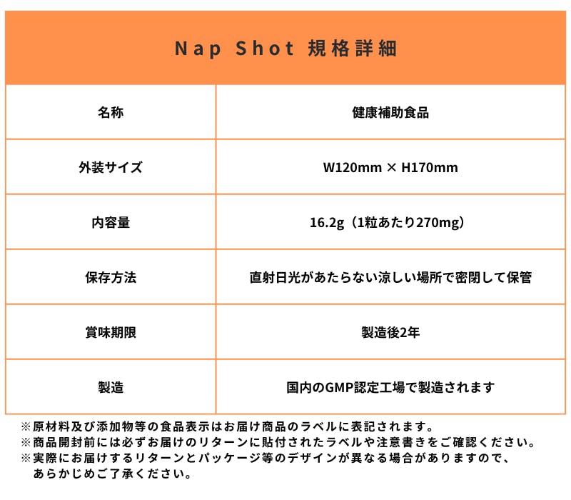 A 昼寝に直接的な効果はございません。あくまで昼寝を推奨する栄養補助・健康維持を目的とした健康食品です。