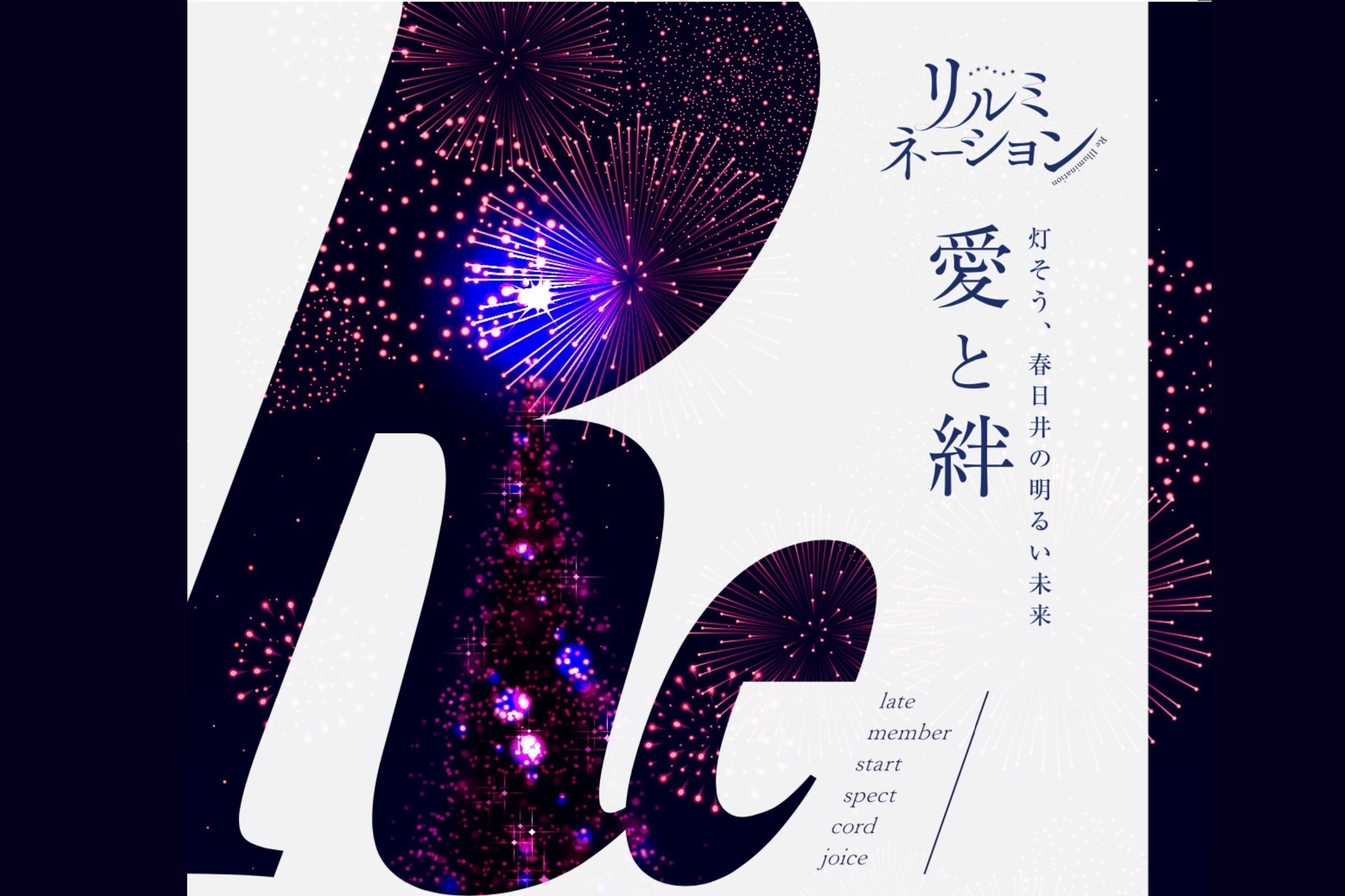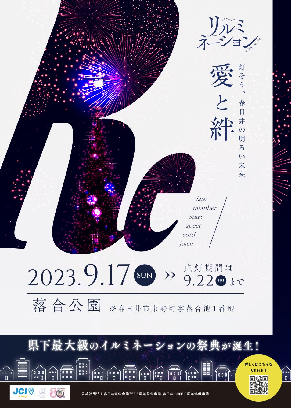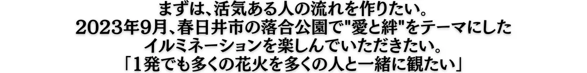 2023年9月17日(日)〜9月22日(金)に春日井市の落合公園で市民の方々や協働団体様と一緒に作り上げる"イルミネーション×花火イベント"を開催いたします。