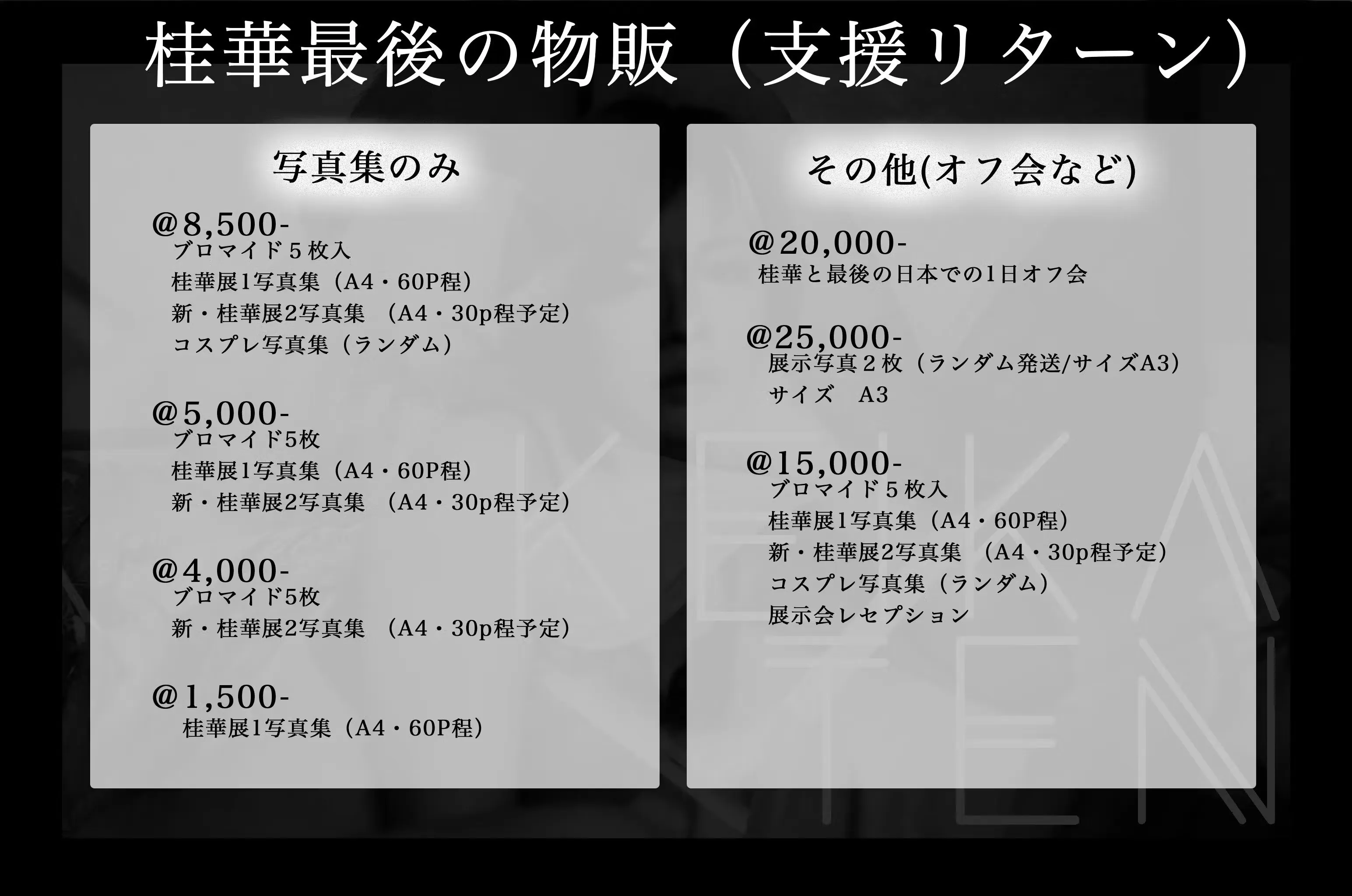※こちら審査形式になります。当選しましたら別途出展料25,000円かかりますのでご注意のほどお願いいたします。お申し込みについては桂華公式SNSやクラウドファンディングのメッセージ等からご報告いたします。