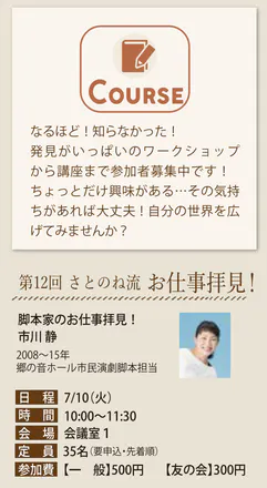 そんな興味深い市川先生のお話が聞ける「第12回 さとのね流 お仕事拝見!」は
