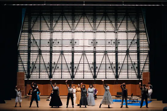 当然ですが舞台稽古のときには本番用の照明なんてついていません。