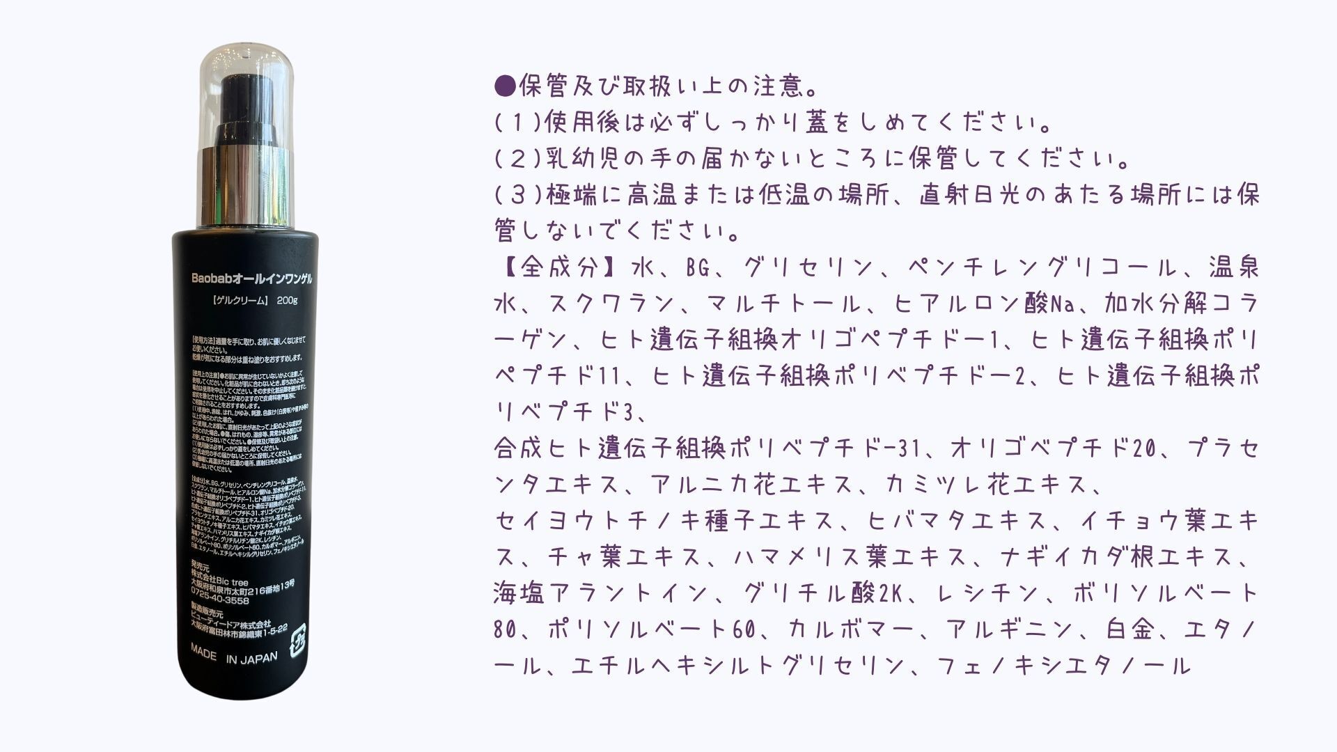 【名称】Baobabオールインワンゲル <ゲルクリーム>