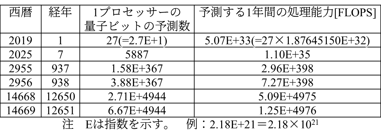 表2 ムーアの法則が続く仮定での量子コンピューターの処理能力