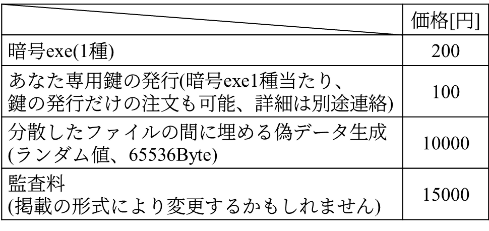 ・ユーザーが作製した暗号exeを当方のリストに登録することも可能で、ダウンロード数に応じて払い込みを行います。ただし、監査料がかかります。