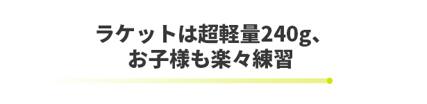 FED FITのラケットは超軽量設計で、重さはわずか240g。お子様も楽々使って練習することができます。