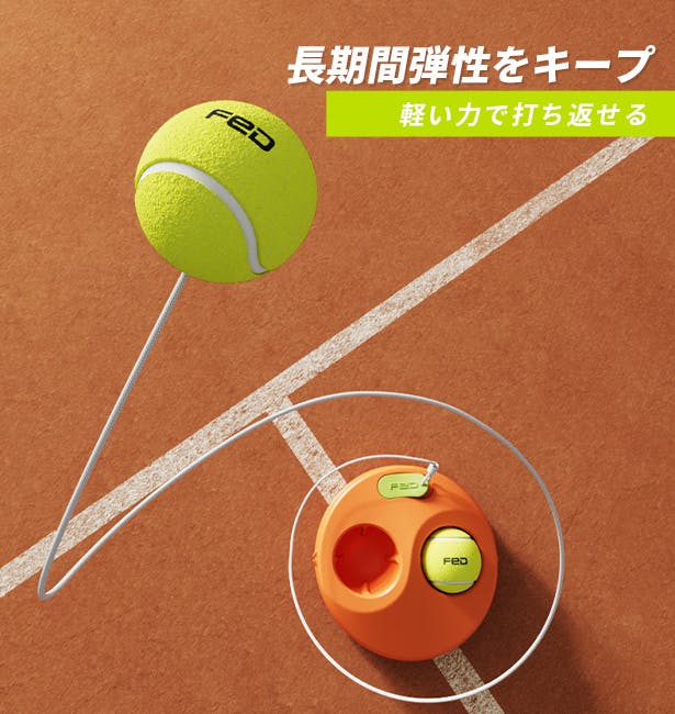 FED FITがあれば、いつでもどこでもテニスのトレーニングができます。打ったボールは自分で戻ってくるので、拾う手間がなく、続けて打つことができます。屋外でも屋内でも、また練習相手がいなくても、サービスやストロークなど様々な動きの練習ができます。