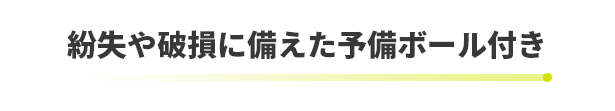 FED FITはボールを紛失したり、破損したりした時のために、予備のボールも付属しています。力いっぱい打って、心ゆくまでトレーニングをお楽しみください。