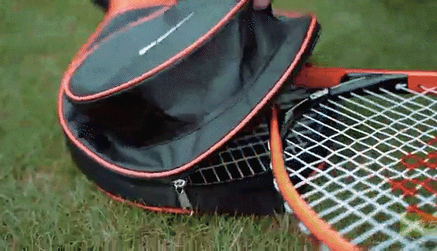 また、台座にはボールとロープの収納スペースがあります。練習が終わったら、ラケットと一緒に収納バッグにコンパクトにまとめて持ち歩けます。