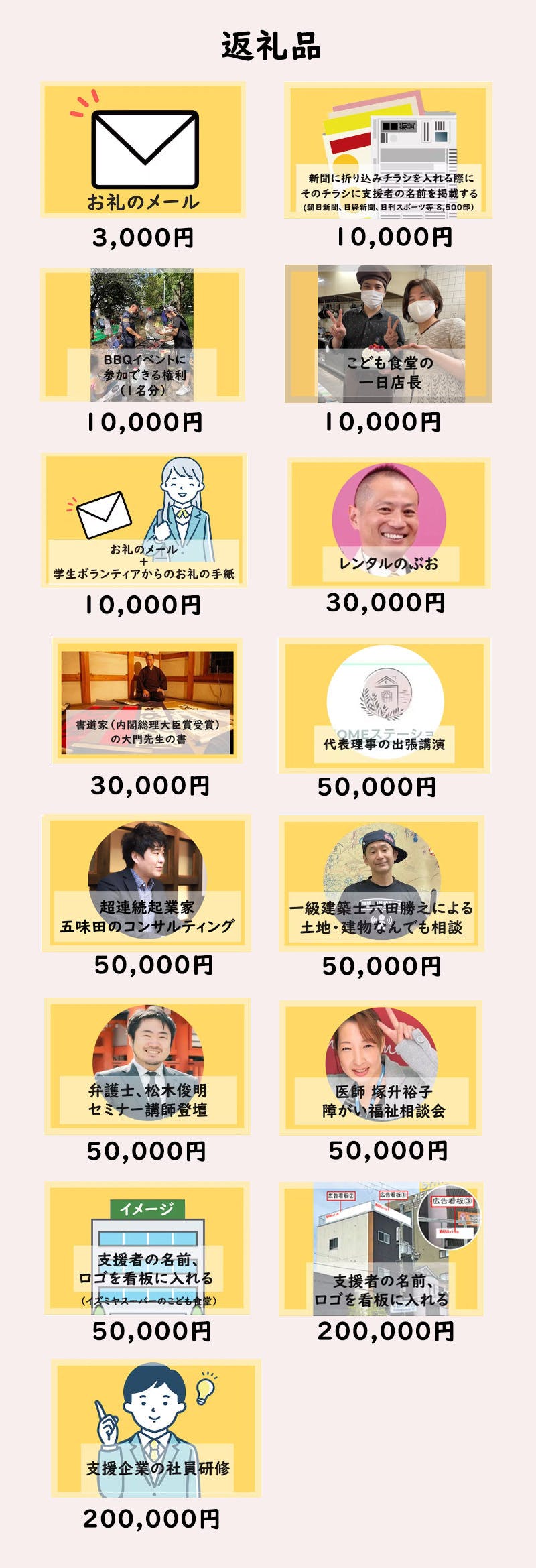 私たちは大阪市を中心に『頼れる大人がいないあなたへ』というメッセージコンセプトを掲げ、アフターケア事業、そして、平野宮町みんな食堂という場所で、「食」の応援事業・こどもの居場所事業を行っています!※ アフターケア事業(=児童養護施設等卒園者などのなにかの理由で親に頼れないこども・若者の支援)