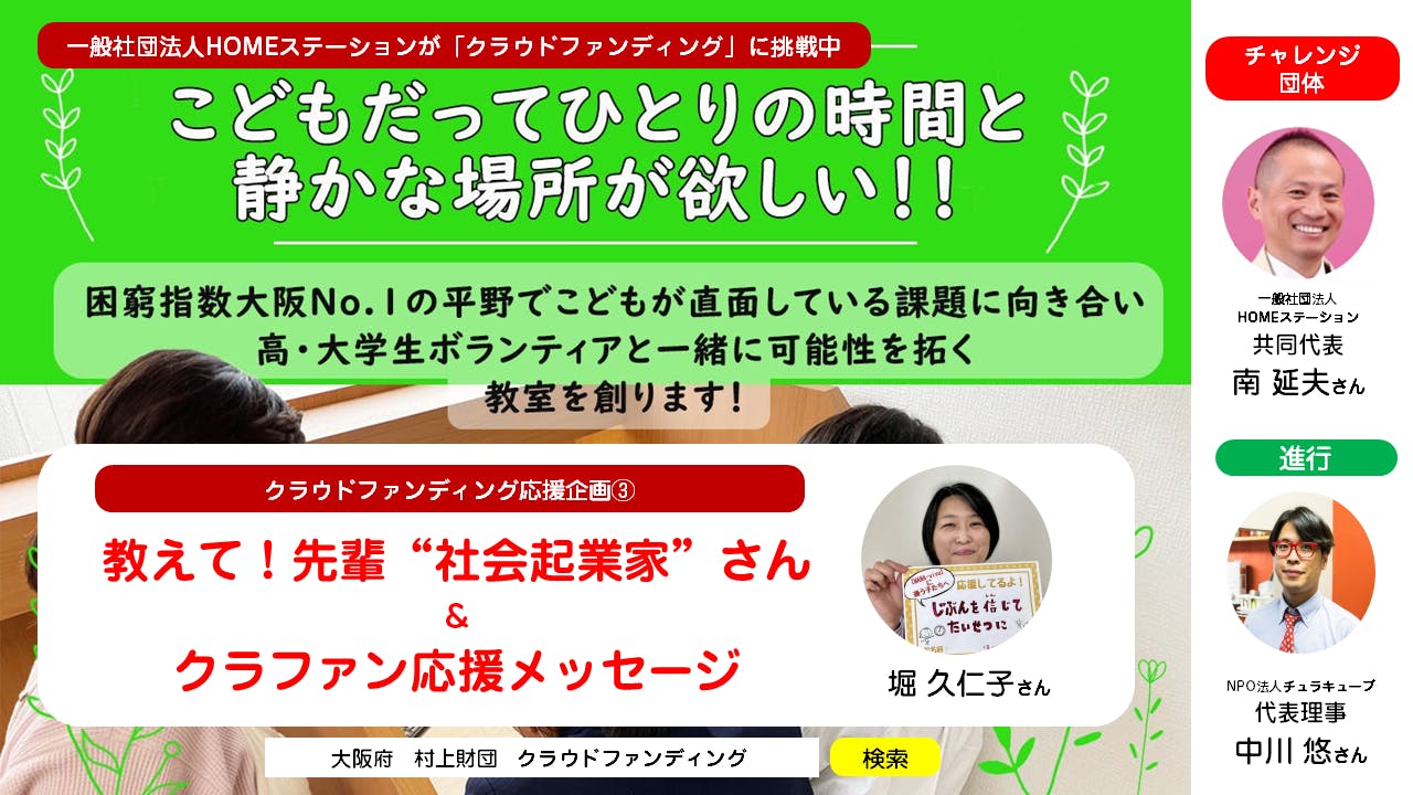 このプロジェクトの盛り上げ役になってくださる先輩「社会起業家」さんをゲストに招き