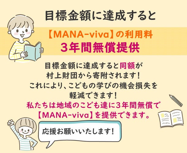 いただきました寄付金で、MANA-vivaでの利用料が3年間無料でご提供できます。