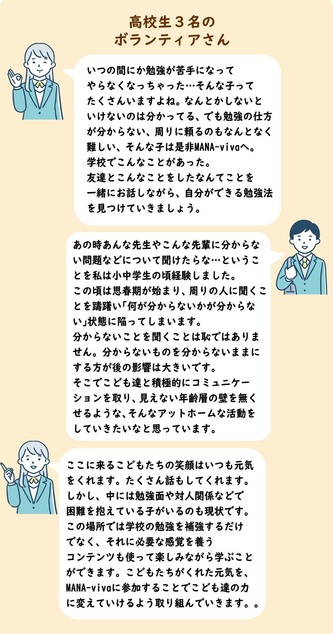 【MANA-viva】が行っているのは、一般的な学習支援だけではありません。