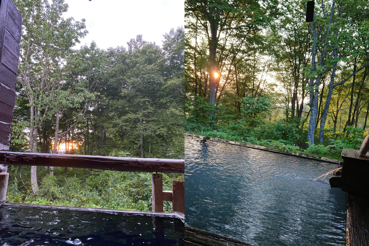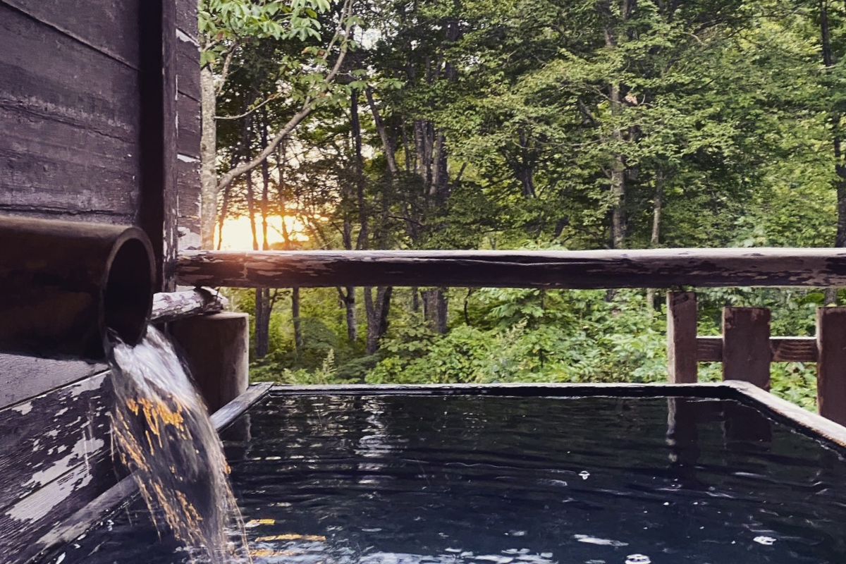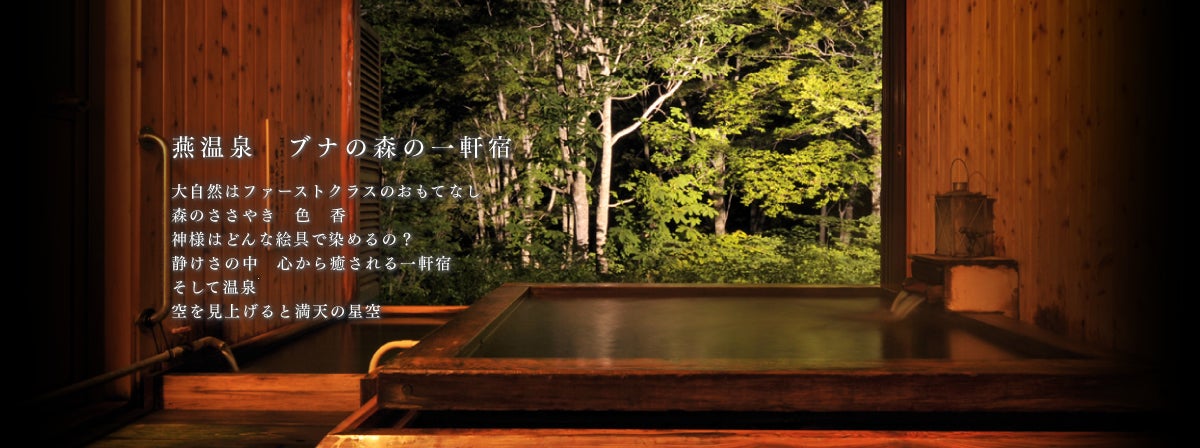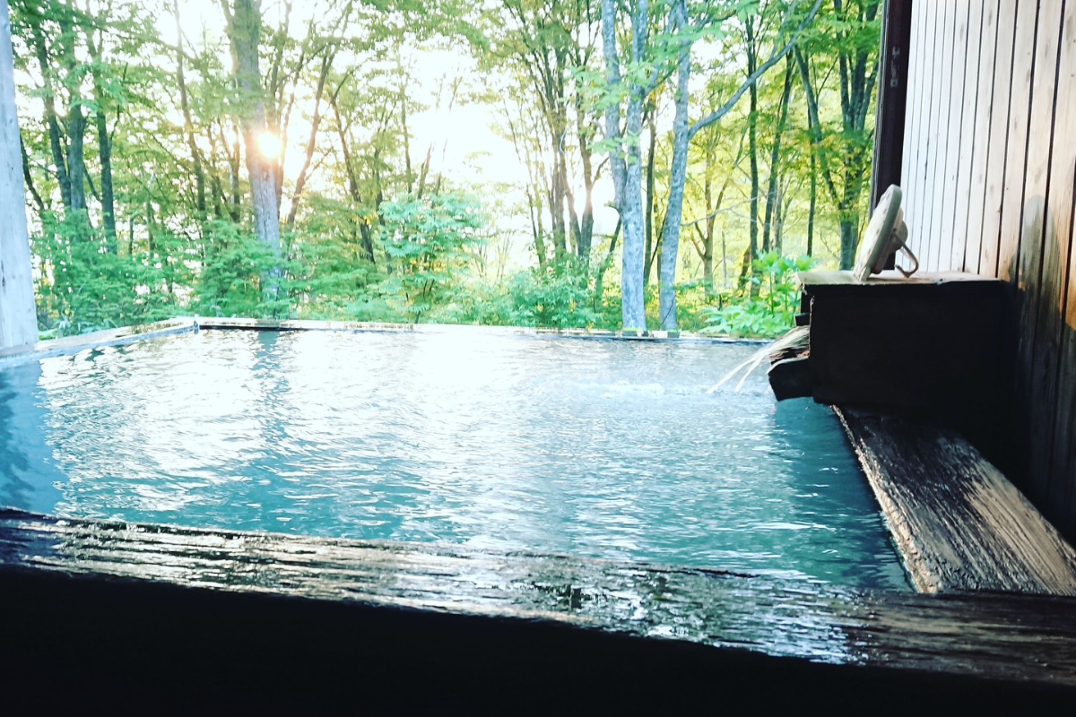 目の前に広がるブナの森の景色を眺めながらの入浴は、まるで時の流れが止まったように感じます。