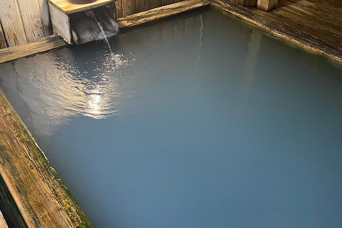白濁した湯色は、硫黄成分を多く含んでいる証。