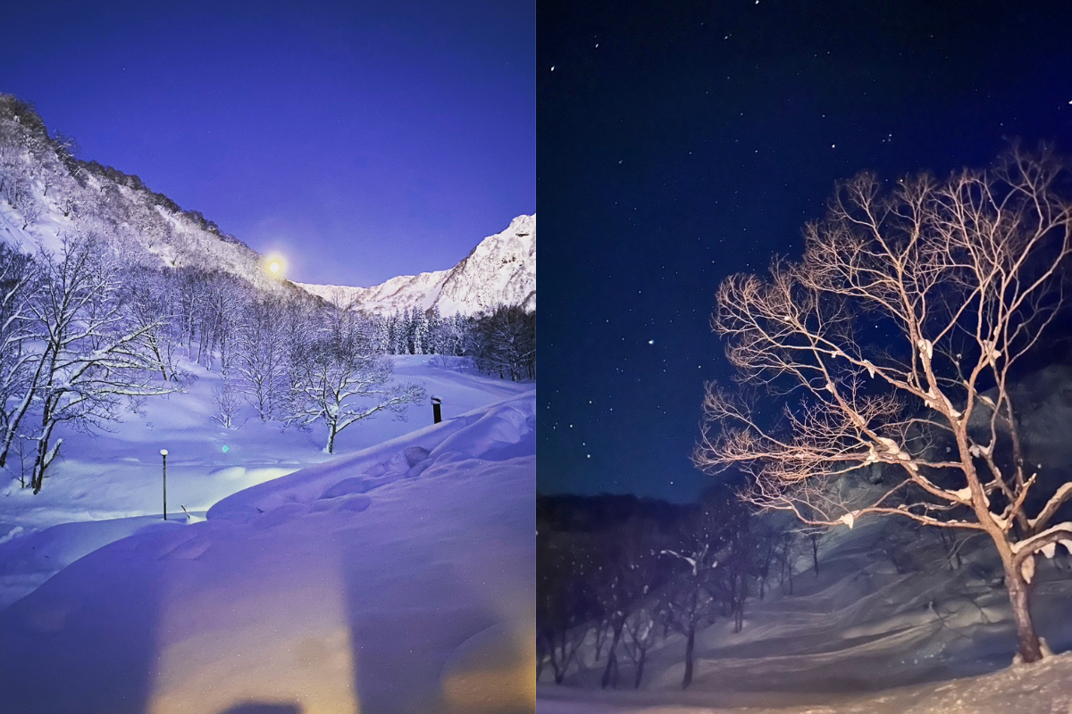 とはいえ、玄関側の雪景色も、地元の人間ですらも息を呑むような幻想的な景観を見せてくれます。どの季節でも、大自然が作りだす景色の中で、心と体をゆったりと「ととのえて」いただけたらと思います。