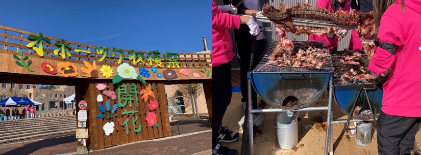 農大オホーツクキャンパスでは毎年10月に収穫祭が行われます。収穫祭はオホーツクキャンパスの一大イベントであり、近隣住民の方やOG・OBの方、大学見学の方など多くの人が訪れます。夏前から校門のアーチを作ったり、サークルや研究室で屋台や展示の準備を行ったりなど、時間をかけて収穫祭に向けて準備を行います。来場者や学生に向けて、豚の丸焼きや鮭鍋の配布をするなど、オホーツクキャンパスならではの催しが行われています。