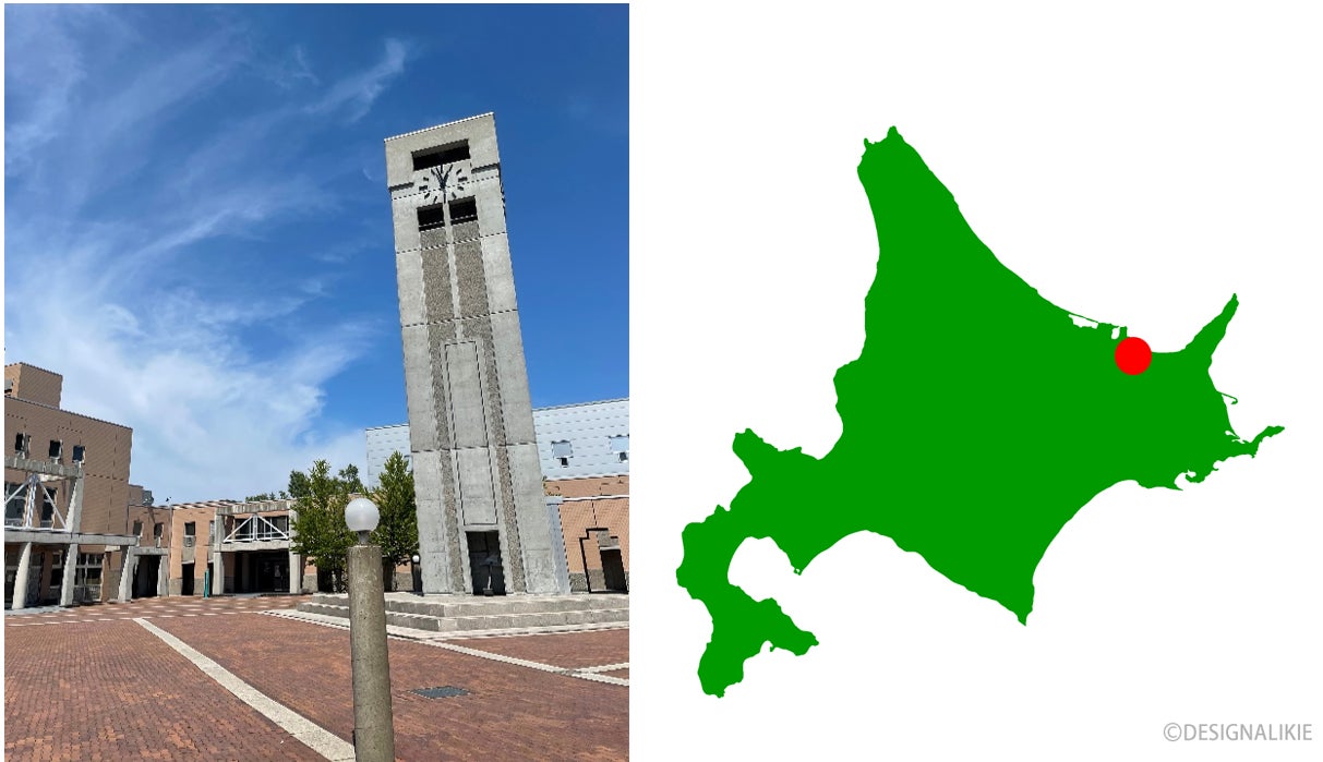 左)東京農業大学 オホーツクキャンパス 右)オホーツクキャンパスの位置