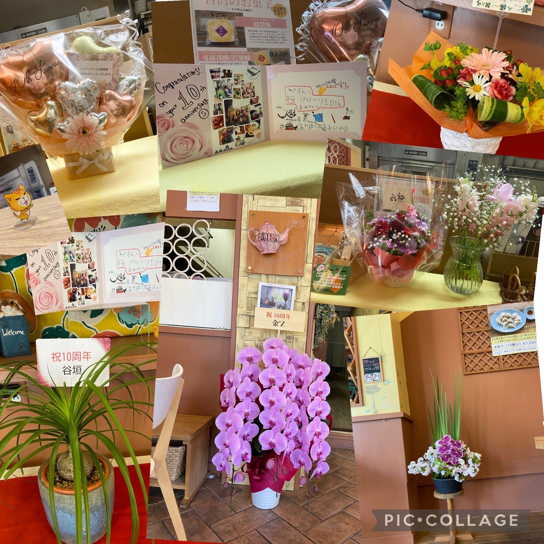 思いもかけず、お客様、友人、知人より10周年を祝う多くのメッセージやお花などをいただき、店内がとても華やぎました。