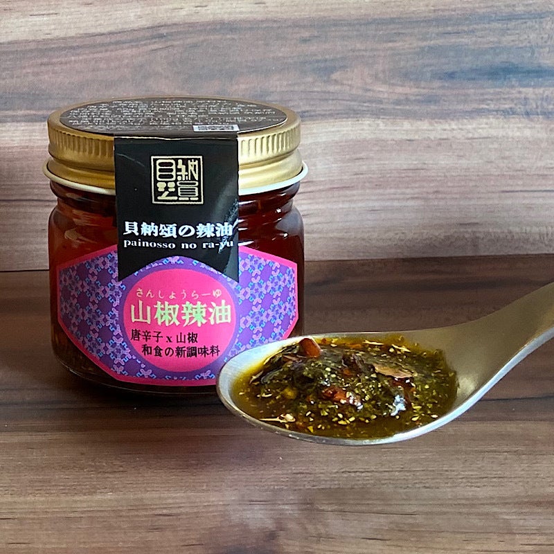 ・山椒辣油・・・和風香辛料老舗「堺 やまつ辻田」さんの国内で石臼挽きした国産粉山椒を使用。山椒の香りと味を引き立てるために、辣油の辛さは控えめに。お味噌汁や卵かけご飯、おさしみなど、和食にピッタリ。