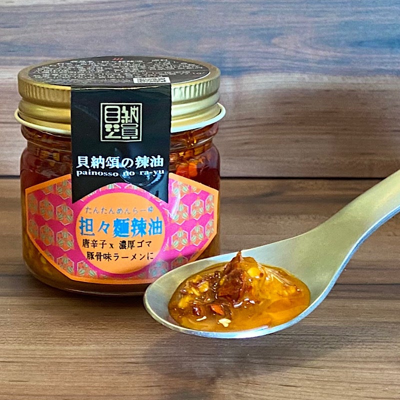 ・担々麺辣油・・・濃厚なねりごま入りで、インスタントラーメンが本格担々麺に。豚骨味のインスタントラーメンがオススメ。餃子や蒸し鶏のつけダレとしても◎。