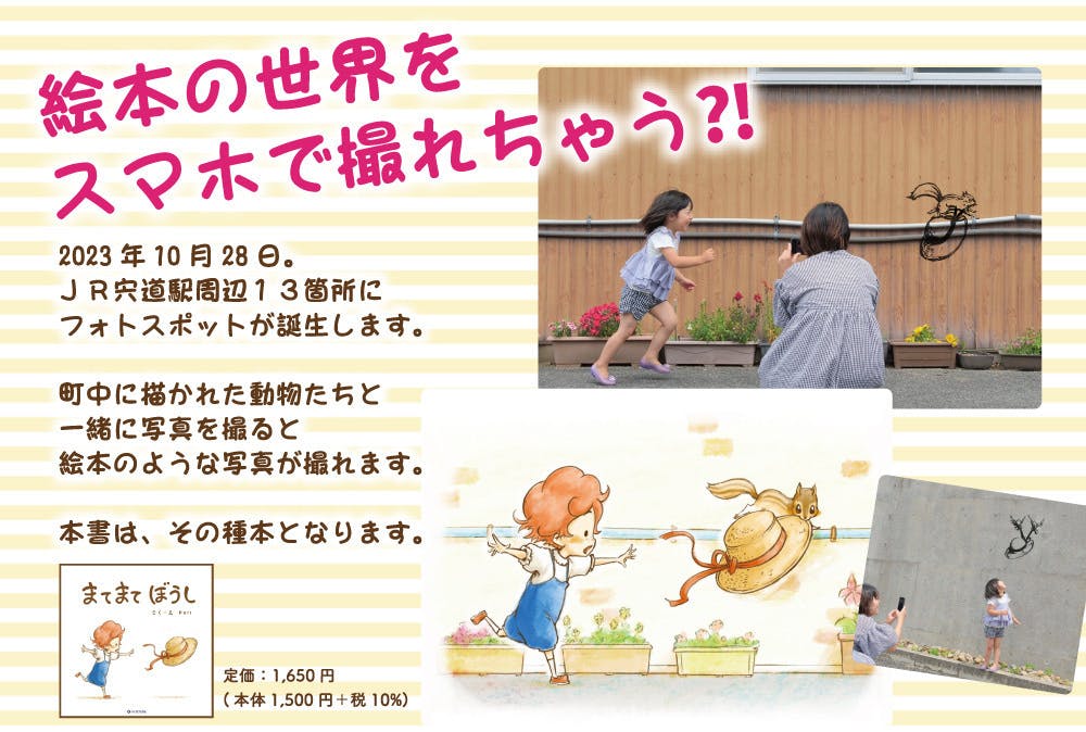 2023/10/26 18:06絵本作品「まてまてぼうし」の出版記念サイン会を行います!著者Poriのサイン会&フォトスポットにでかけてみよう!スタッフによるフォトスポットでの撮影会も実施します♪絵本は「今井書店」「Amazon」にて販売中!クラウドファンディングで「絵本購入」のご支援をいただいた方も対象となりますのでぜひお越しください♪★当日絵本販売を会場でも実施します(なるべくお釣りの出ないようご準備ください)日時2023年11月3日(金・祝)★予約不要<午前の部>10:30~サイン会スタート11:00~フォトスポットでの撮影会<午後の部>13:30~サイン会スタート14:00~フォトスポットでの撮影会会場「宍道公民館」〒699-0401 島根県松江市宍道町宍道885−3 もっと見る