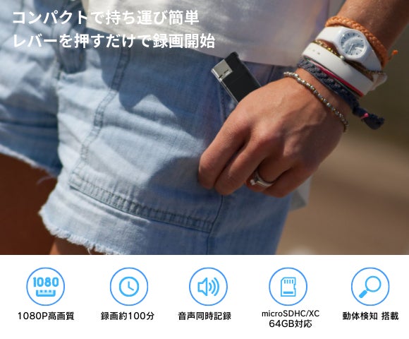 持ち運びが楽にでき、旅行やアウトドアアクティビティ、セクハラなどの証拠取り、講義等の撮影など、様々なシーンで活躍します。