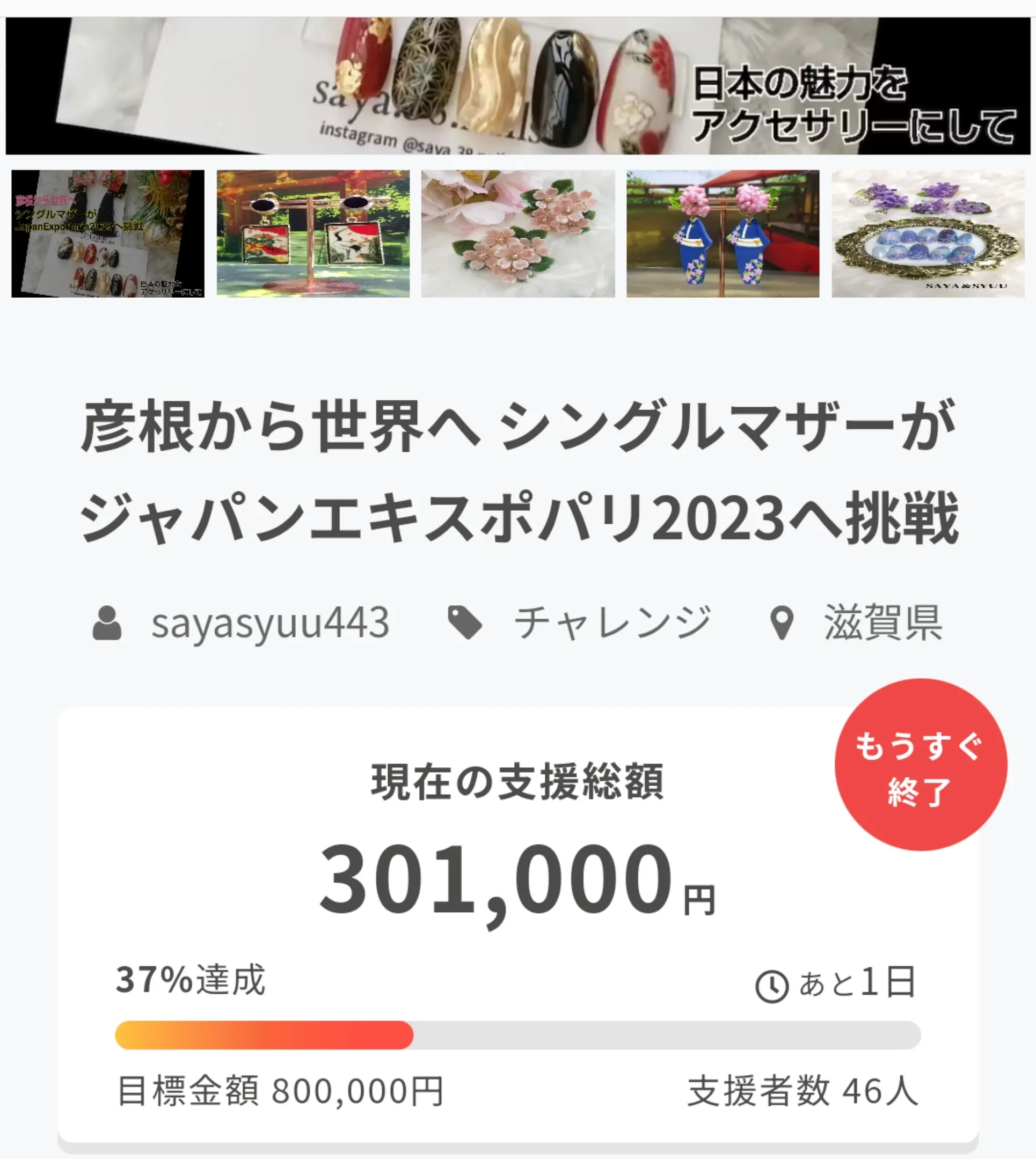 残り2日、ラストスパート頑張りますので、よければお力を貸して下さい。よろしくお願い致します。