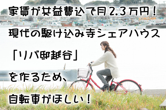 また、シェアハウスとして自転車を所有するので、ゲストや宿泊される方はもちろん、今後リバ邸越谷に住む住人が入れ替わったりしても継続的に利用できます。