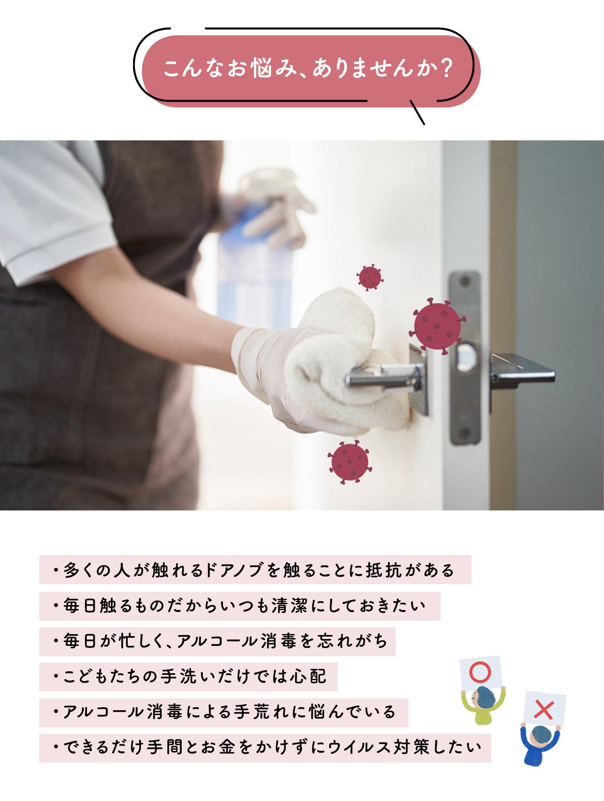 今や定着しつつある除菌習慣ですが、そのぶん除菌にストレスを感じている方も増えています。ドアノブは家族が毎日触れるもの。だからみんなが安心して使えると嬉しいですよね。