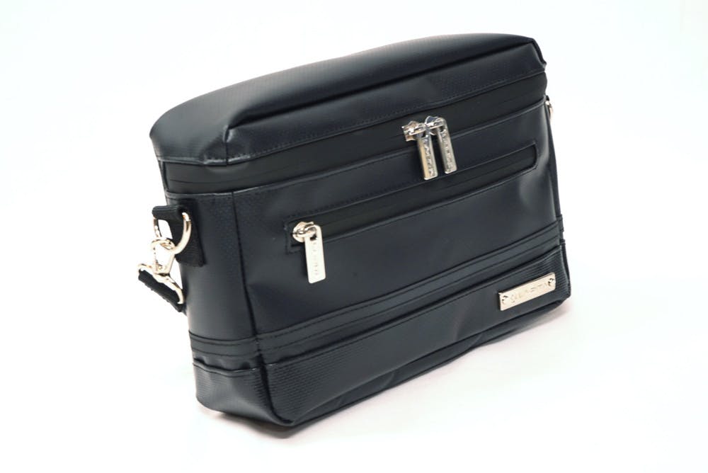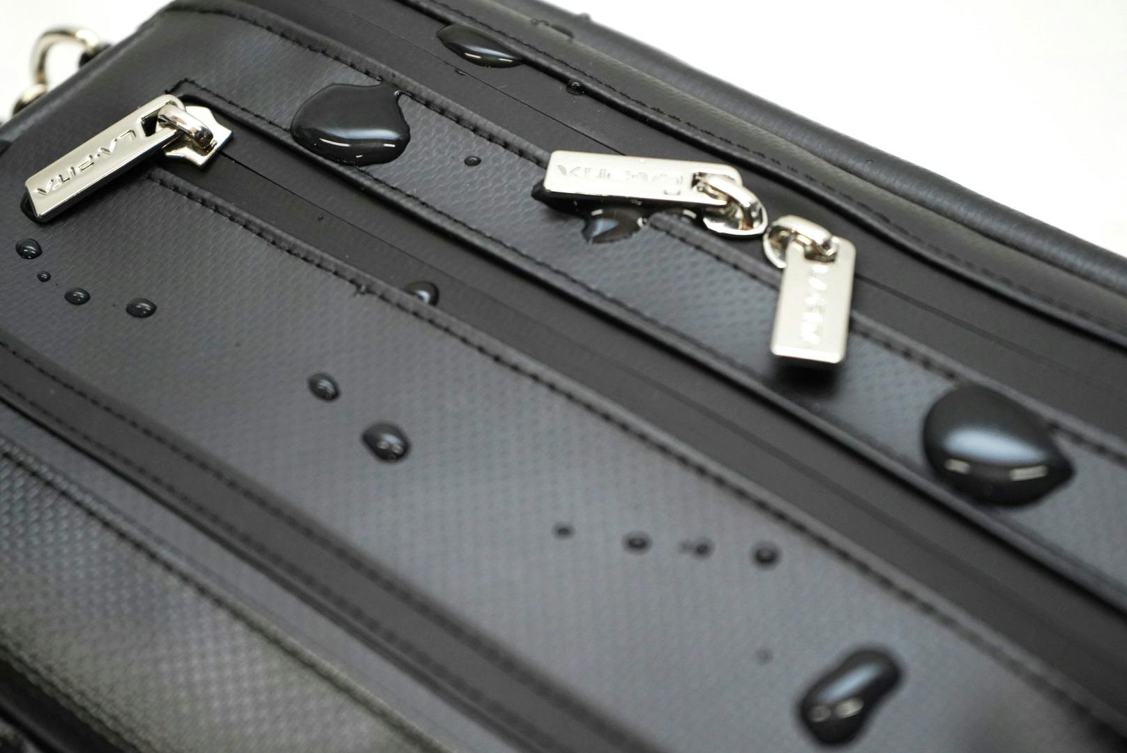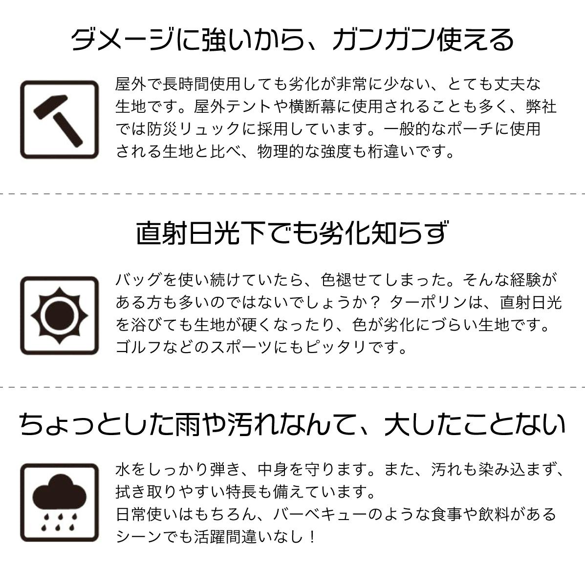 ボディバッグには珍しい塩化ビニル系多層素材であるターポリンを採用。ラピタの防災リュックでも採用されている生地です。