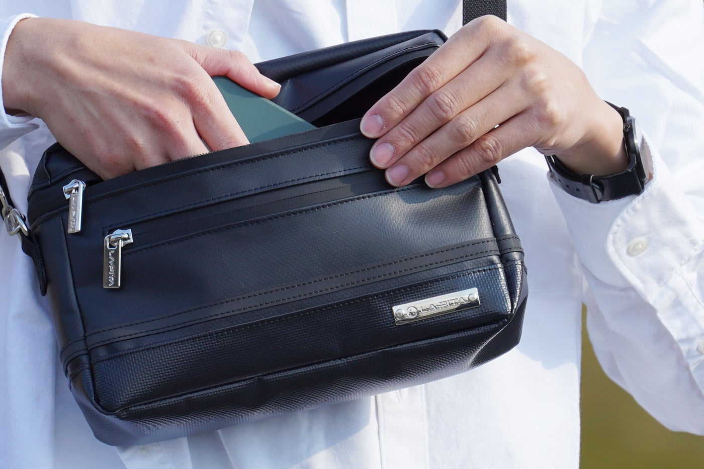 本プロジェクトの挑戦は8月31日までが支援期限です。残り14日!本日は、男性スタッフ(40代後半)がバッグを持っている動画を公開いたします。本プロジェクトの写真モデル男性は、20代スタッフですが今回のように年齢差も気にならないユニセックスデザインにプラス、エイジレスデザインもこのボディバッグの特徴です。シックにまとめられた色合いだから、どんな年齢層でもしっくりくるはず!いかがでしょうか。いよいよプロジェクトも残り14日です。終了日最後まで、みなさまからのご支援をいただけるよう商品の良さをお伝えしていきます。引き続きよろしくお願いいたします!!!LA・PITA