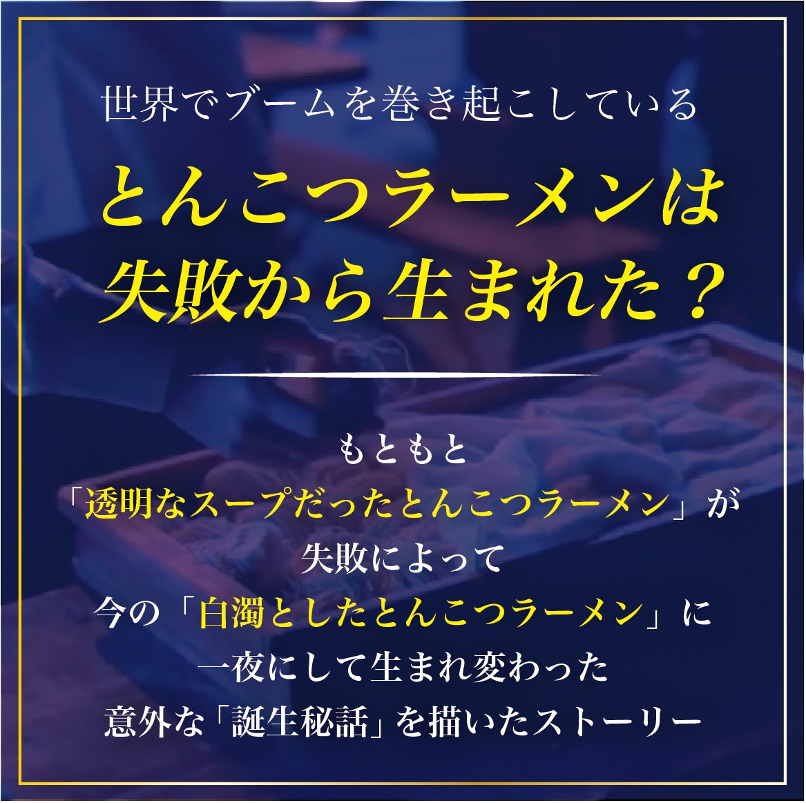 この映画は、【失敗から生まれたとんこつラーメンの誕生秘話】を描いている唯一の作品です。そして、昭和の古き良き日本の情緒を、現代の視点から斬新に描き出し、世界の若い層に響くストーリーになっています。
