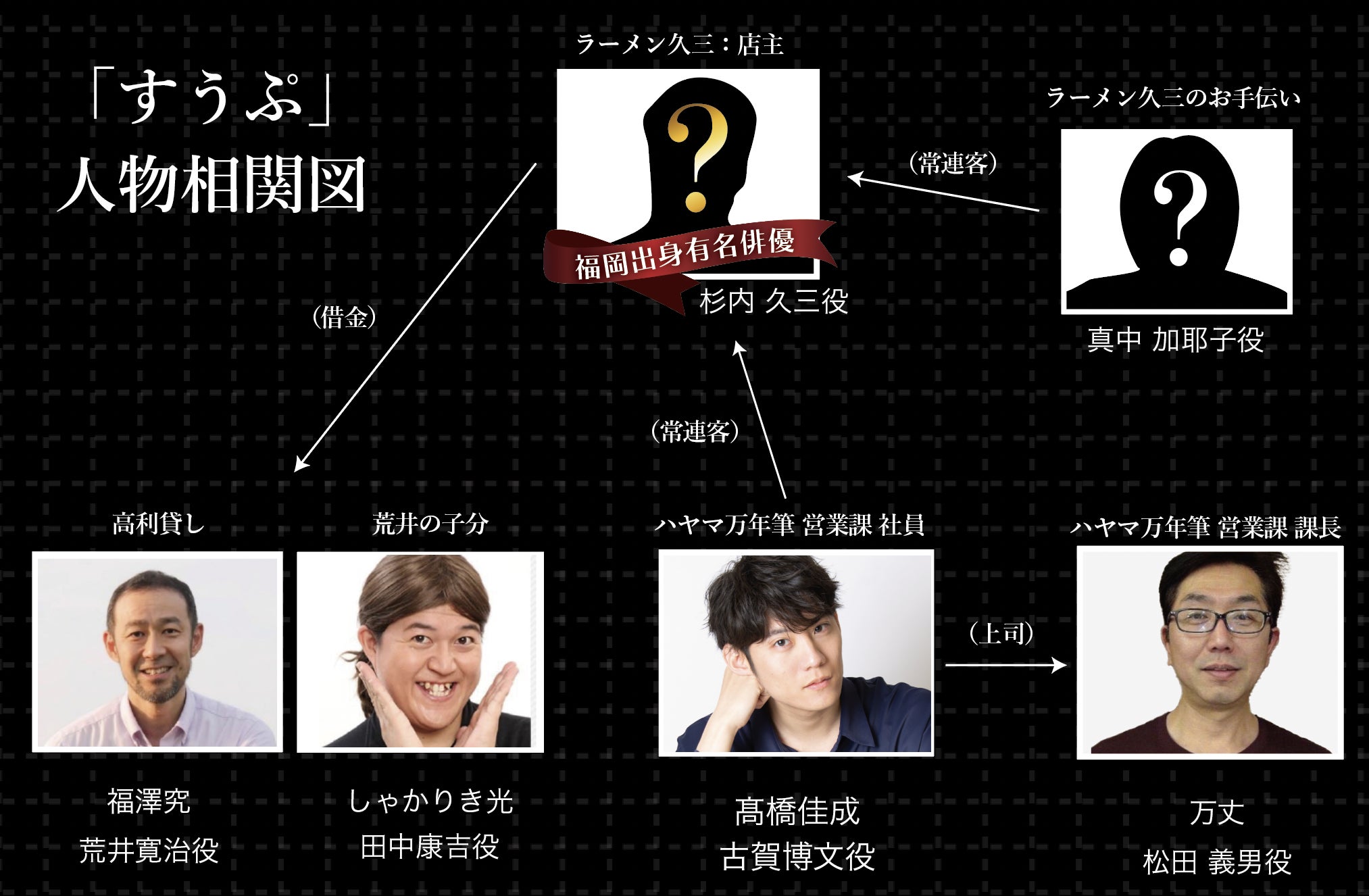 世界に届ける映画「すうぷ」は『第一線で活躍する福岡出身のあの俳優』や『若者にバズってるひかるママ』など魅力的な出演者が勢揃いしている、見どころ満載の映画となっています。