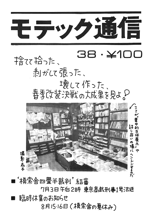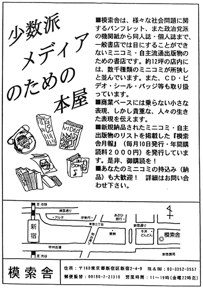 1998年1月14日から20日にかけて、京都のあーす書房にて出張販売。模索舎と理念を共有できる書店との連携を図っていた。