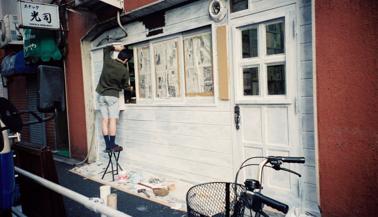 模索舎の外壁修繕。舎内も舎外もDIYで修繕・模様替えを行ってきた(1997年5月撮影)。
